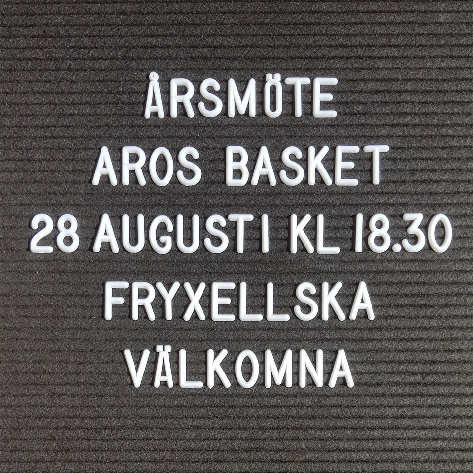 Nu startar vi en ny basketsäsong. Vi hälsar alla gamla som nya medlemmar välkomna. Vill Du börja spela basket eller vara ledare så är du hjärtligt välkommen till Aros Basket familjen. Träningstiderna är satta och gäller från och med måndagen den 26 augusti, vecka 35. Med reservation för att ändringar kan ske under säsongen. Under vecka 34 tränar vi i Fryx på tisdagar och torsdagar 20/8 och 22/8 kl 17:00-22:00 för följande grupper nedan och därefter på ordinarie träningstider, se länk. 17:15-18:15 Tisdag FP10/11, FP08/09 & P06/07 17:15-18:15 Torsdag FP08/09 & P06/07 18:15-19:15 Tisdag & Torsdag F06/07, F02/04 19:15-20:30 Tisdag & Torsdag P01 till P05 20:30-22:00 Tisdag & Torsdag Herrar Vi tränar i Fryxellska skolans sporthall (Fryx), se länken här. Medlems- och verksamhetsavgifter för säsong 2019/2020. Se på länken här. Aros Basket Mobil 0739772118 http://www.arosbasket.se/ Instagram Facebook