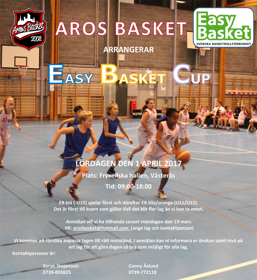 Aros Basket arrangerar EBC i Fryxellska lördagen den 1 april för barn födda 2005 & yngre. Anmäl ert lag till arosbasket@hotmail.com Aros Basket 9 mar 2017 0kommentarer